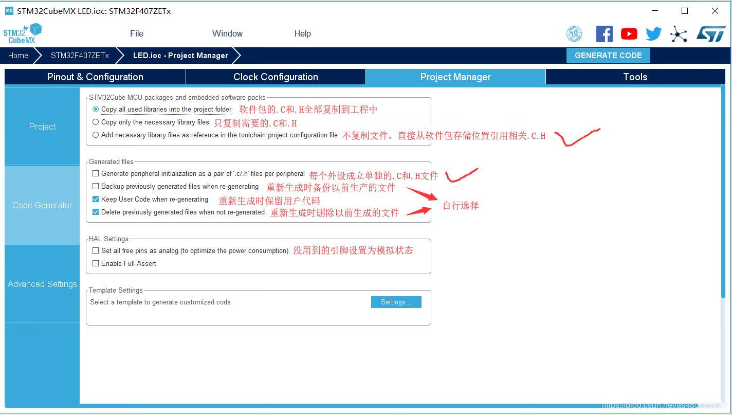 设置完MCU的各个配置之后,第三个就是工程文件的设置了