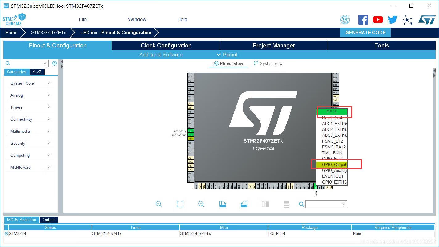 这里只需要把我们的LED对应引脚设置为GPIO_Output即可