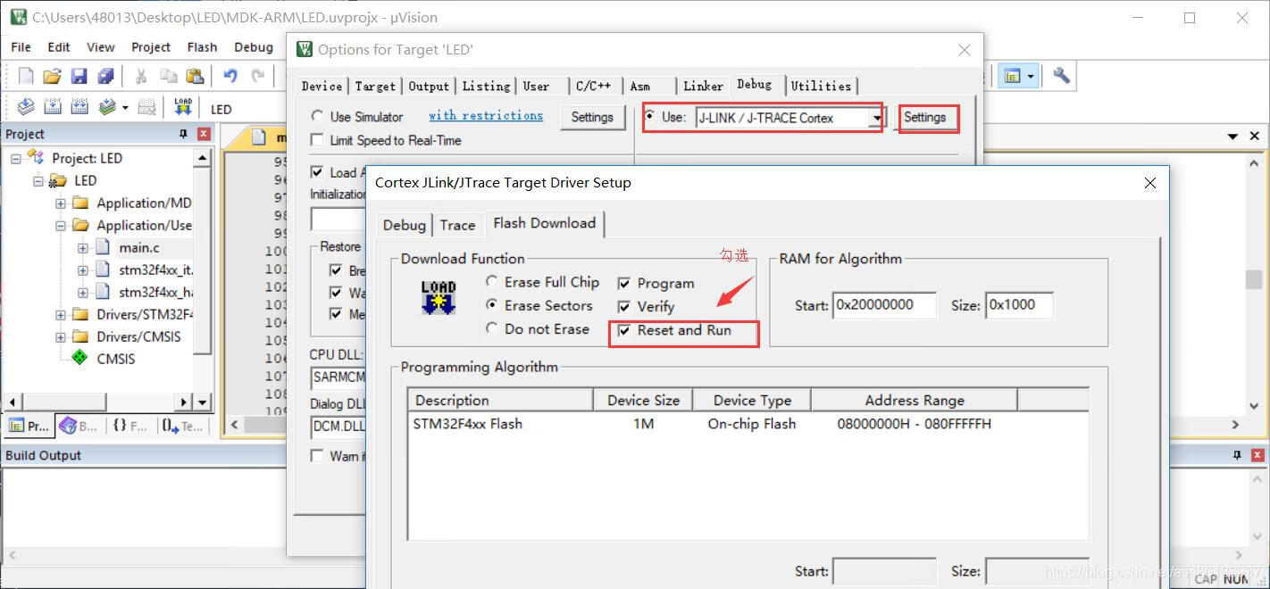 新建的工程所有配置都是默认的 我们需要自行选择下载模式,勾选上下载后复位运行