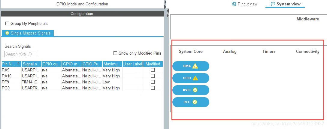 表示警告,对应配置出现问题 点击该选项即可外设配置界面查看