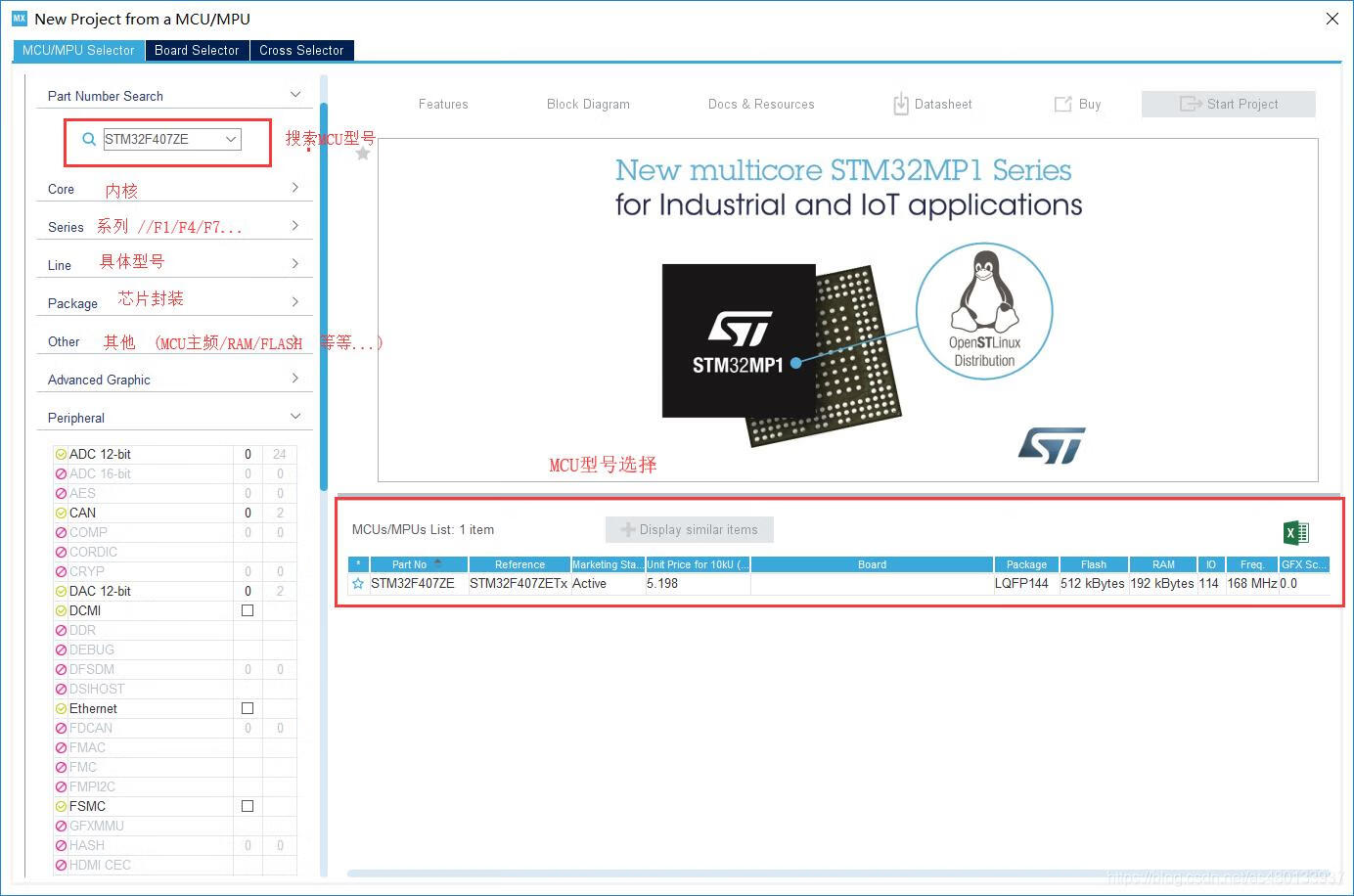 出现芯片型号选择 一般我们直接搜索自己芯片的型号即可 ,如STM32F103C8T6